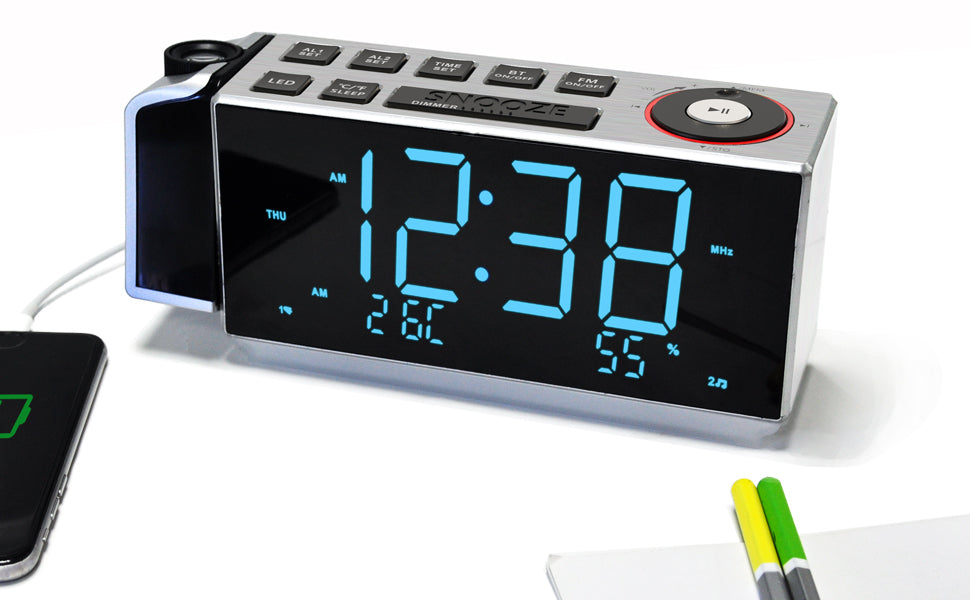 Digital Projection Alarm Clock with FM Radio Bluetooth